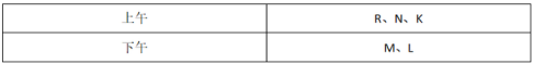 某单位准备举办新春联欢活动,现有K、L、M、N、O、R六个节目需要安排,分上、下午两个时间段表演,每个节目只表演一次,具体要求如下:
