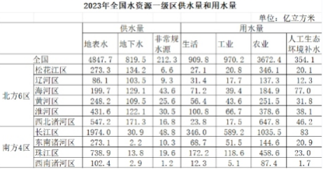 关于2023年全国水资源一级区供水量和用水量不能从上述资料中推出的是( )。