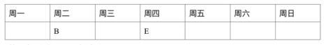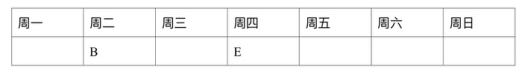 (1)B士兵必须在周二站岗,而E士兵必须在周四站岗;