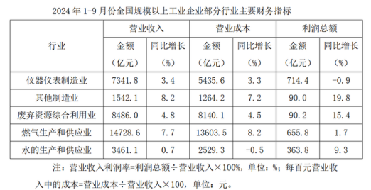 ","2024年1-9月份仪器仪表制造业营业收入利润率高于10%