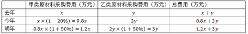 根据今年总费用比去年增长50%、明年总费用比去年多12万元可列方程组: