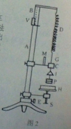 (1)如图2,将劲度系数大约为0.2~0.3N·m的弹簧挂在约利秤上,依次在弹簧秤下端挂上1、2、3、4、5、6个砝码(每个砝码个数为0.50g),利用约利秤上的游标V测出弹簧的相应的伸长量。根据测得的数据计算出弹簧的劲度系数