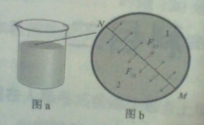 图b是水与空气分界面的一部分,MN是假想的线段,若线段长为