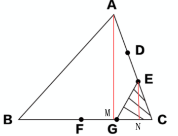 如下图,AD=DE=EC,F是BC的中点,G是FC的中点,如果三角形ABC的面积是24,则三角形CEG的面积是: