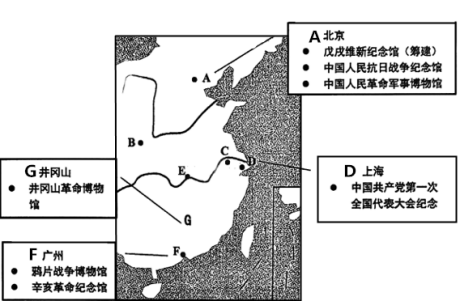 为了加深同学们对近代中国历史的理解,老师从丰富的场馆资源中精心挑选,绘制了以下分布图,并布置了研学任务。