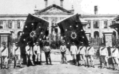 D材料五湖北军政府前挂起铁血十八星军旗 | E材料八《时务报》(光绪二十二年)发表《变法通议》等文章 | F材料六英军占领广州期间到乡下劫掠图 |
