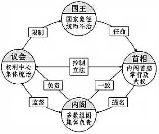 下图为近代某资本主义国家政治权力结构关系示意图,据此解读正确的有( )