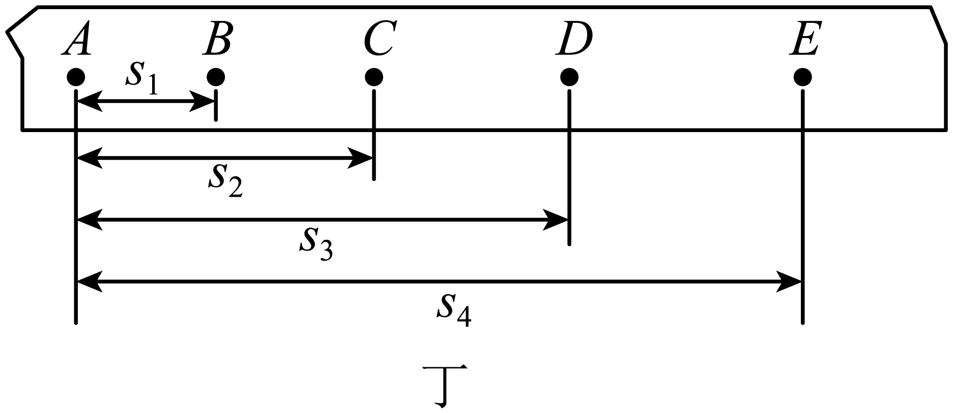 根据匀变速直线运动的推论$\Delta x=a{{t}^{2}}$由逐差法可知,小车的加速度大小$a=\dfrac{CD-AB+DE-BC}{4t^{2}}=\dfrac{CE-AC}{4t^{2}}=\dfrac{s_{4}-2s_{2}}{4t^{2}}=\dfrac{17.86-2\times7.92\times10^{-2}}{4\times0.1^{2}}\ \text{m}/\text{s}^{2}\approx0.51\ \text{m}/\text{s}^{2}$