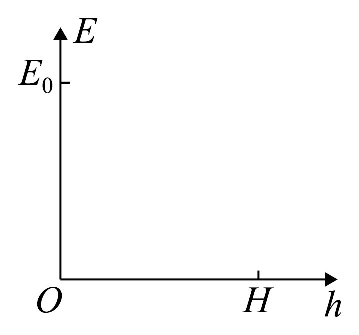 设某雨滴刚开始下落时的机械能为$E_{0}$,离地高度为$H$。在图中定性画出雨滴从静止开始下落到落地的整个过程中,雨滴机械能$E$随雨滴下落高度$h$变化的$E-h$图像;