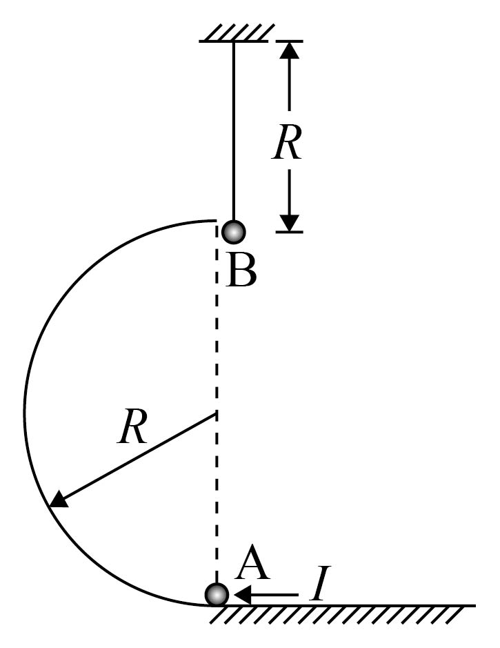 "]]根据题意,设小球A从最低点开始运动时的速度为$v_{0}$,由动量定理有$I={{m}_{\text{A}}}{{v}_{0}}$