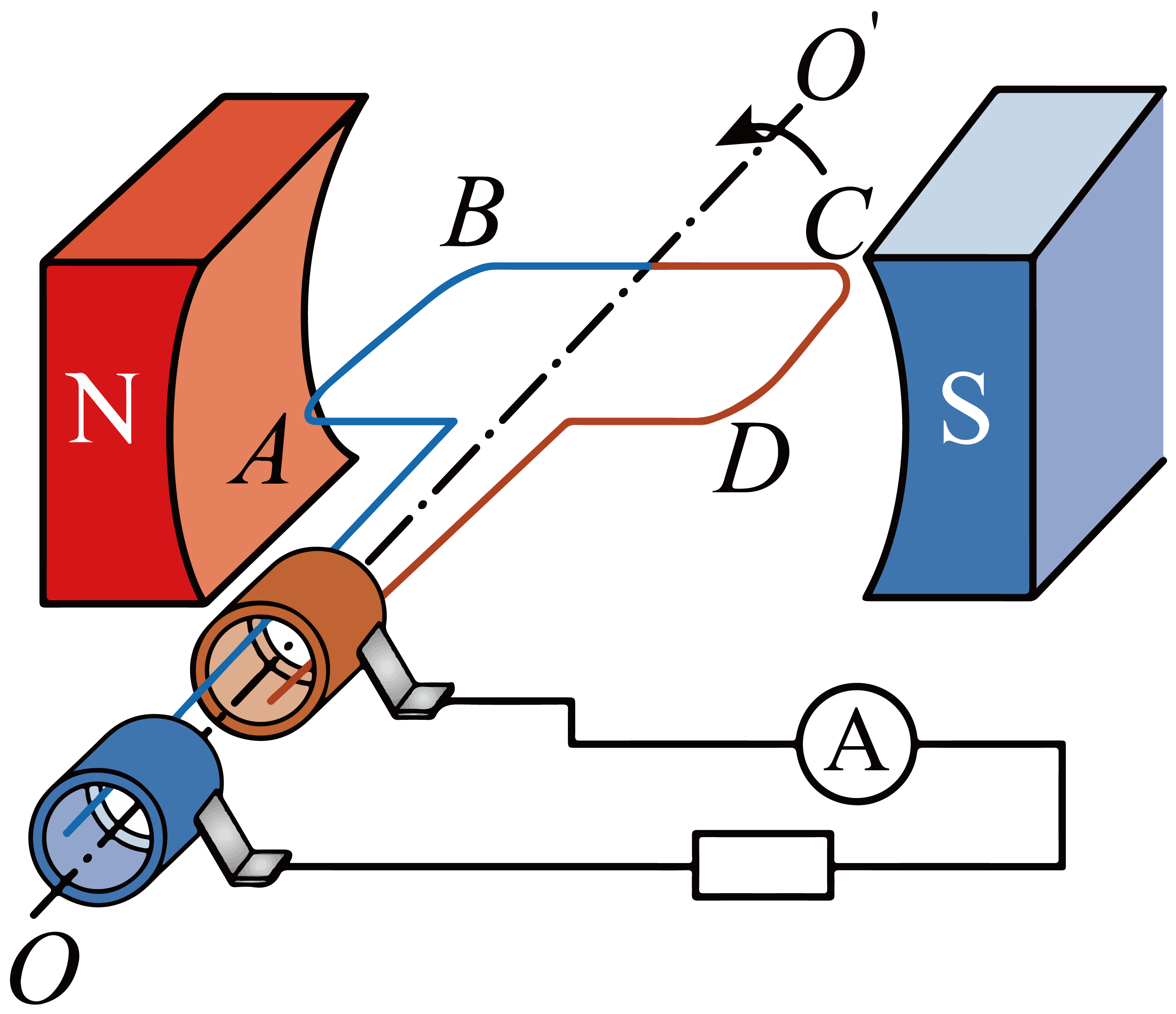 如图所示,交流发电机中的线圈$ABCD$沿逆时针方向匀速转动,产生的电动势随时间变化的规律为$e=10\sin (100\pi t)\:\rm V$。下列说法正确的是$(\qquad)$