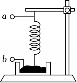如图所示,把一根柔软的铜制弹簧悬挂起来,使它的下端刚好跟槽中的水银接触,再将$a$、$b$端分别与一直流电源两极相连;发现弹簧开始上下振动,电路交替通断。则下列说法正确的是$(\qquad)$