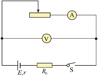 考虑电压表分流引起的误差,则$E_{测}$ $E_{真}$;(填“大于”、 “等于”或“小于”);$r_{测}$与真实值$r_{真}$之间的关系式为 (用$R_{V}$,$R_{0}$,$r_{测}$,$r_{真}$表示)。