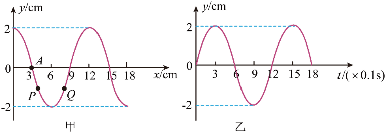 一列简谐横波在$t=0.6\;\rm s$时刻的图像如图甲所示,波上$A$、$P$、$Q$三个质点的位置标注其中,$A$质点的振动图像如图乙所示。以下说法正确的是$(\qquad)$
