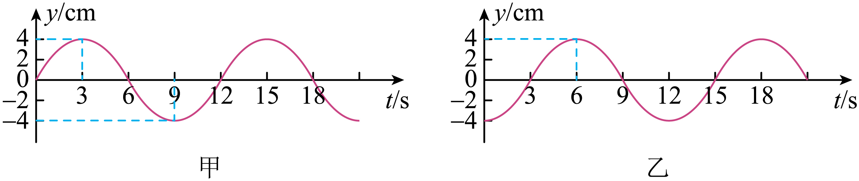 $\rm CD$.由图甲可得,从$t=0$时开始计时,$x=5\:\rm m$处的质点做简谐运动的表达式为$y_{1}=4\sin\omega t\:\rm (cm)$