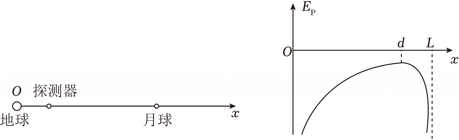 地球和月球间的距离为$L$,以地心作为坐标原点,沿地月连线建立$x$轴,在$x$轴上有一个探测器。仅考虑地球和月球对探测器的引力作用,可得探测器引力势能$E_{p}$随位置变化关系如图所示,已知在$x=d$处探测器的引力势能最大,则地球与月球的质量之比为$(\qquad)$