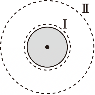 物体在万有引力场中具有的势能叫做引力势能,若取离地球无穷远处的引力势能为零,则质量为$m$的物体引力势能为$E_{P}=-\dfrac{GMm}{r}$,其中$G$为引力常量,$M$为地球的质量,$r$为物体到地心的距离。如图虚线圆为人造地球卫星的两个圆轨道,轨道Ⅰ是近地轨道。已知轨道Ⅱ的半径为轨道Ⅰ的$2$倍,地球半径为$R$,则质量为$m_{0}$的人造地球卫星$(\qquad)$