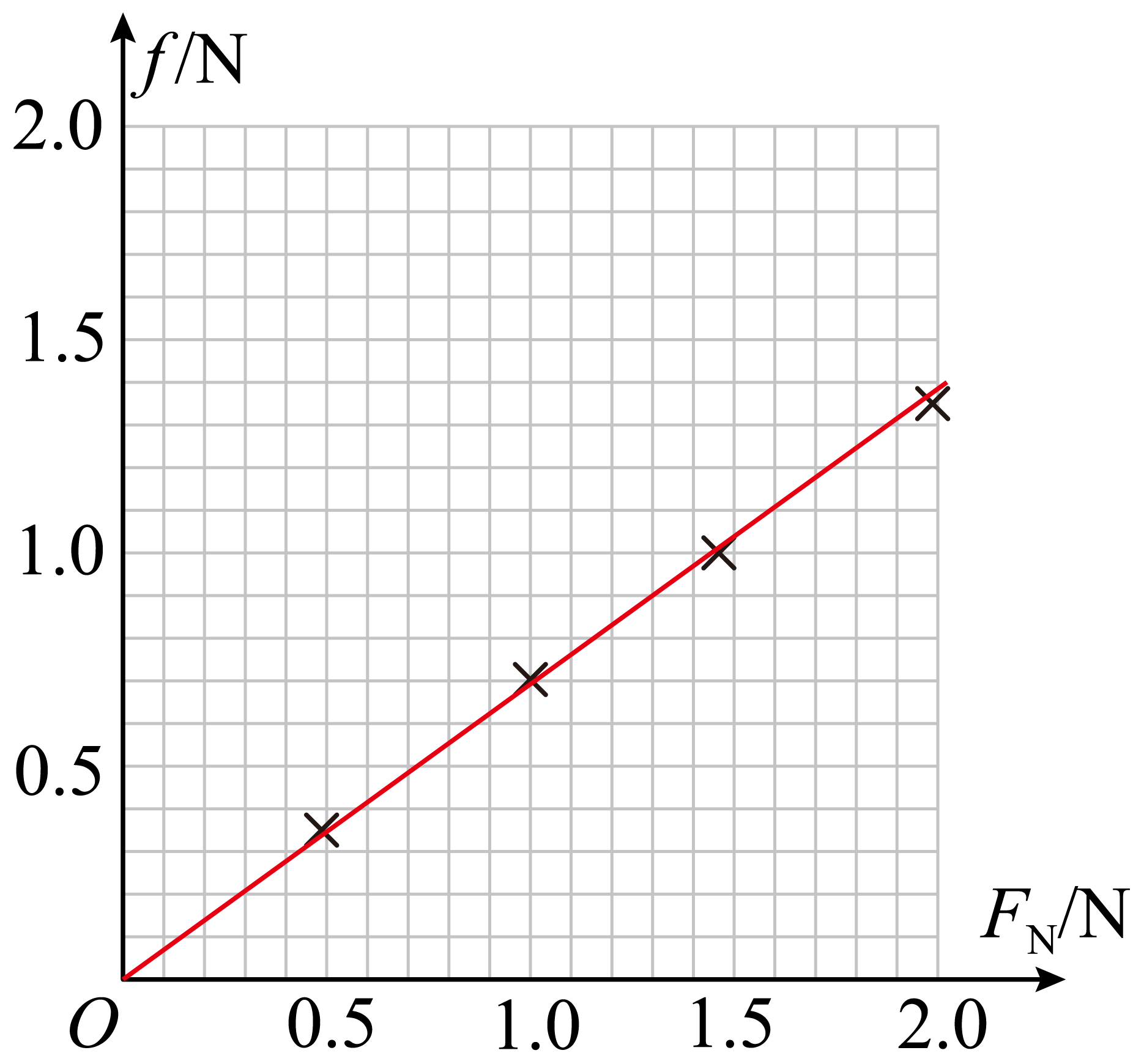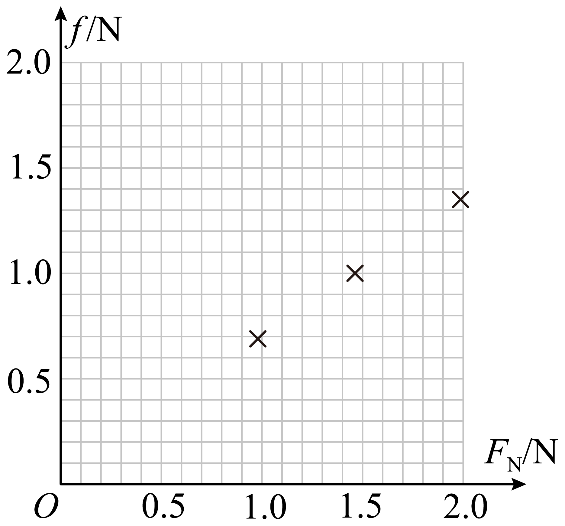 将以上$4$组数据绘制在$f-F_{N}$图像中,请在$f-F_{N}$图像中补充第$1$组数据点并作图 。通过图像分析可得,平板小车与木块之间的动摩擦因数为 (保留$2$位有效数字)。