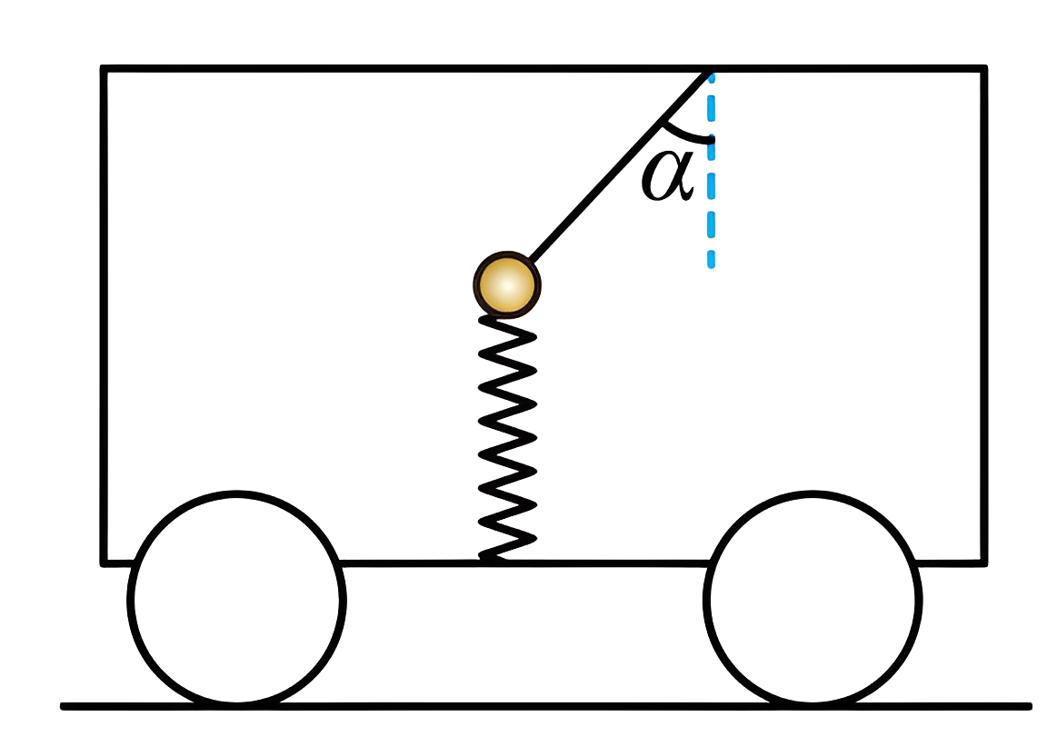 "]当小车匀速运动时,弹簧弹力大小等于小球重力大小,此时细绳的拉力$F_{T}=0$;当小车和小球向右做匀加速直线运动时,绳的拉力不可能为零,弹簧弹力有可能为零。