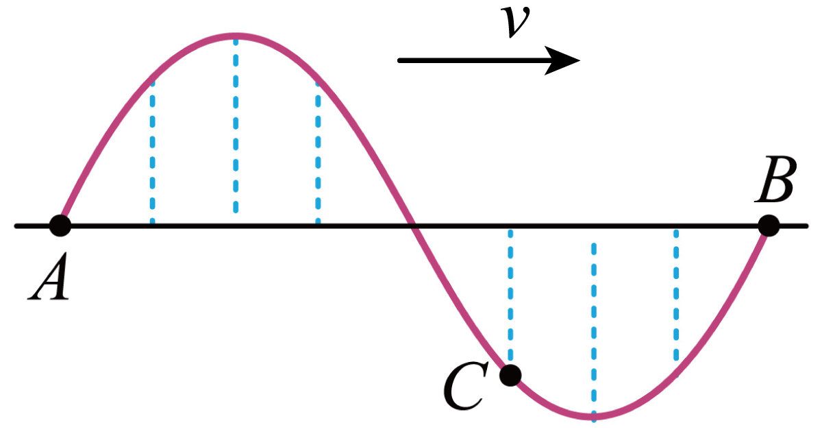 一列向右传播的横波在$t=0$时的波形如图所示,$A$、$B$两质点间距为$8\;\rm m$,$B$、$C$两质点平衡位置的间距为$3\;\rm m$,当$t=1\;\rm s$时,质点$C$恰好通过平衡位置,该波的波速不可能为$(\qquad)$