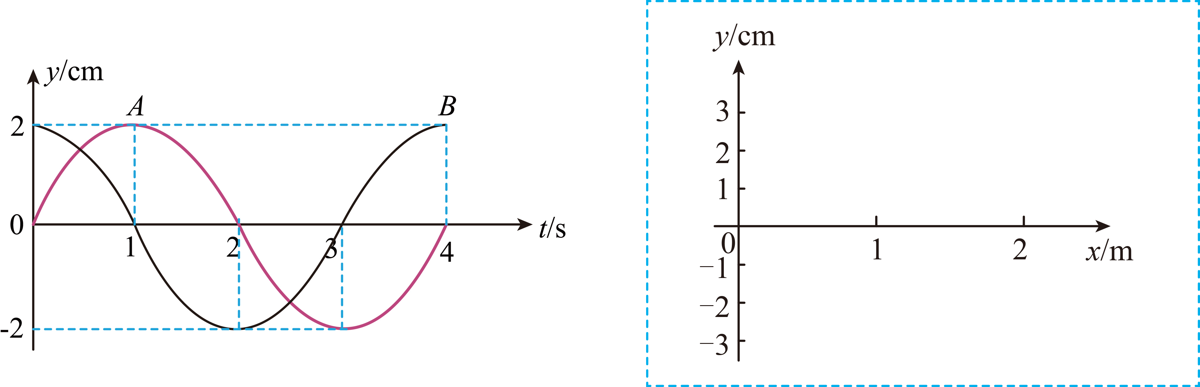 一列波长大于$1\;\rm m$的横波沿着$x$轴正方向传播,分别处在$x_{1}=1\;\rm m$和$x_{2}=2\;\rm m$的两质点$A$、$B$的振动图像如图所示,$B$比$A$振动 (选填“超前”或“滞后”),请在矩形框中画出$t=0$时刻$A$、$B$之间的波形图 ,该波的传播速度大小为 $\;\rm m/s$。