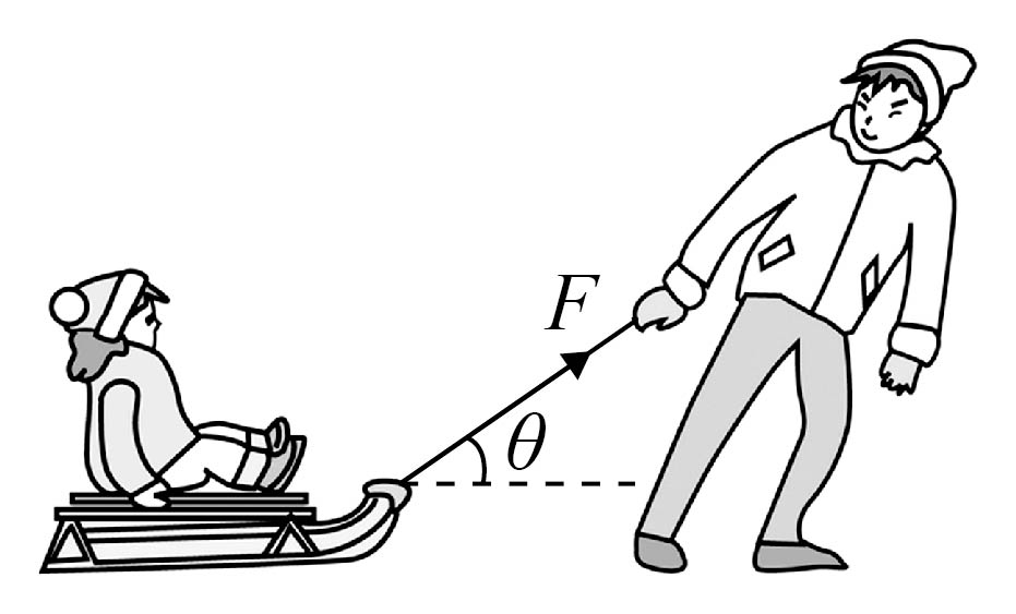 如图所示,坐在雪橇上的人与雪橇的总质量为$m$,在与水平面成$\theta$角的恒定拉力$F$作用下,沿水平地面向右移动了一段距离$s$。已知雪橇与地面间的动摩擦因数为$\mu $,则关于雪橇的分析正确的是$(\qquad)$