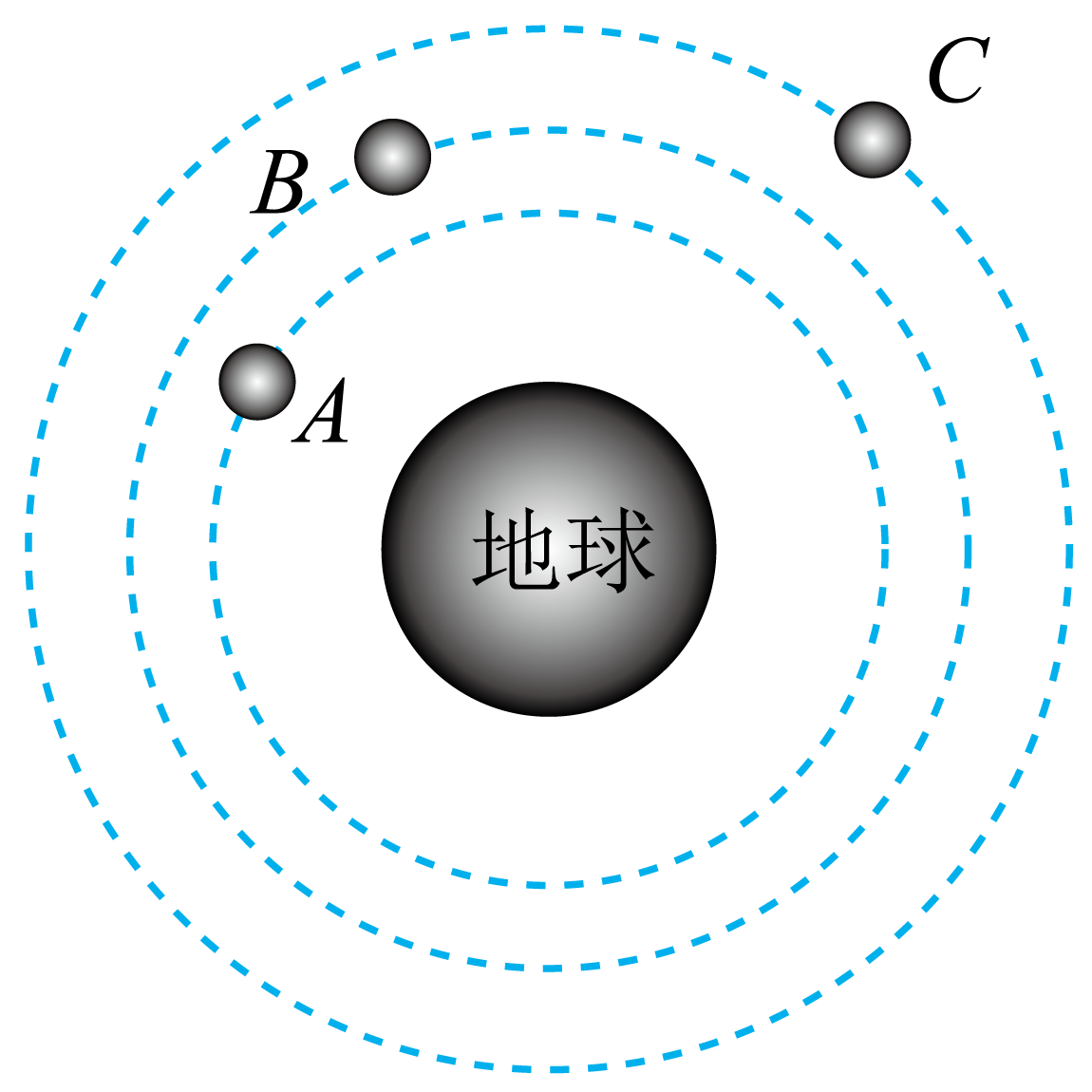 三颗卫星的线速度$v_{A}\\gt v_{B}\\gt v_{C}$