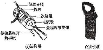 钳形电流表是一种用于测量高压输电线上电流大小的仪表。如图所示为钳形电流表的结构图和外形图,据图判断下列说法不正确的是$(\qquad)$