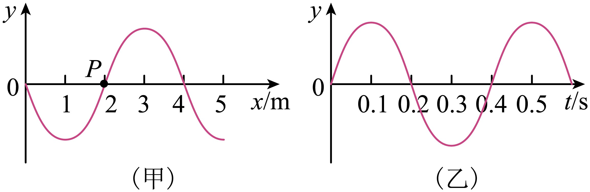 如图甲,为$t=0.2\;\rm s$时一简谐横波的波形图,图乙为$x=2\;\rm m$质点$P$的振动图像,根据图像中信息,可判断: