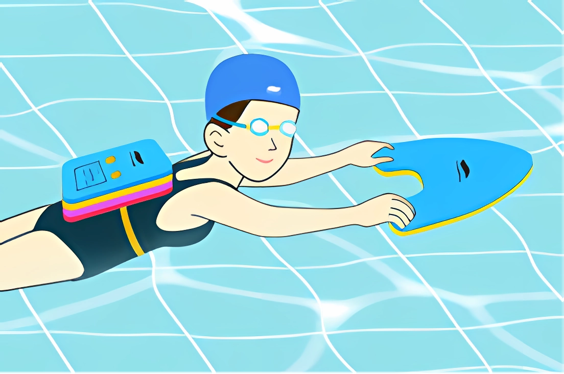 如图所示,游泳池中有一初学者双手借助一块浮板,在水面上正以匀速直线运动的方式向前游动,他的双手对浮板施加的力$(\qquad)$