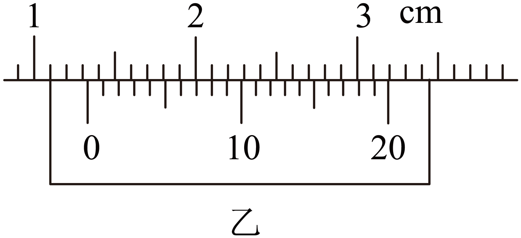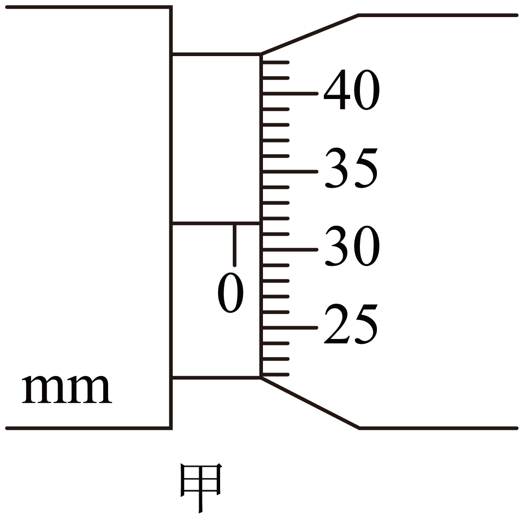 在用$20$分度的游标卡尺测其长度时,示数如图乙所示,读数为 $\;\rm cm$。