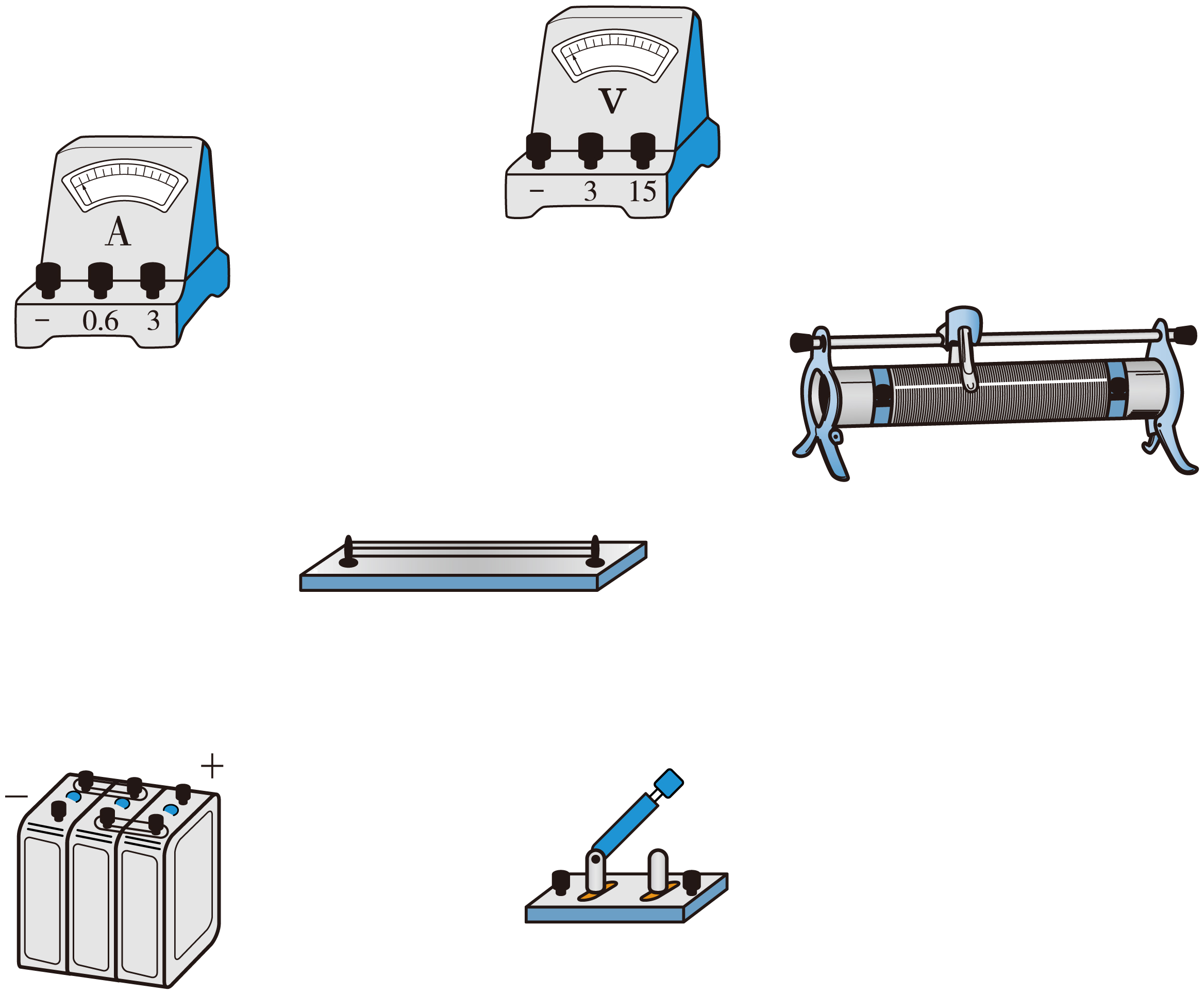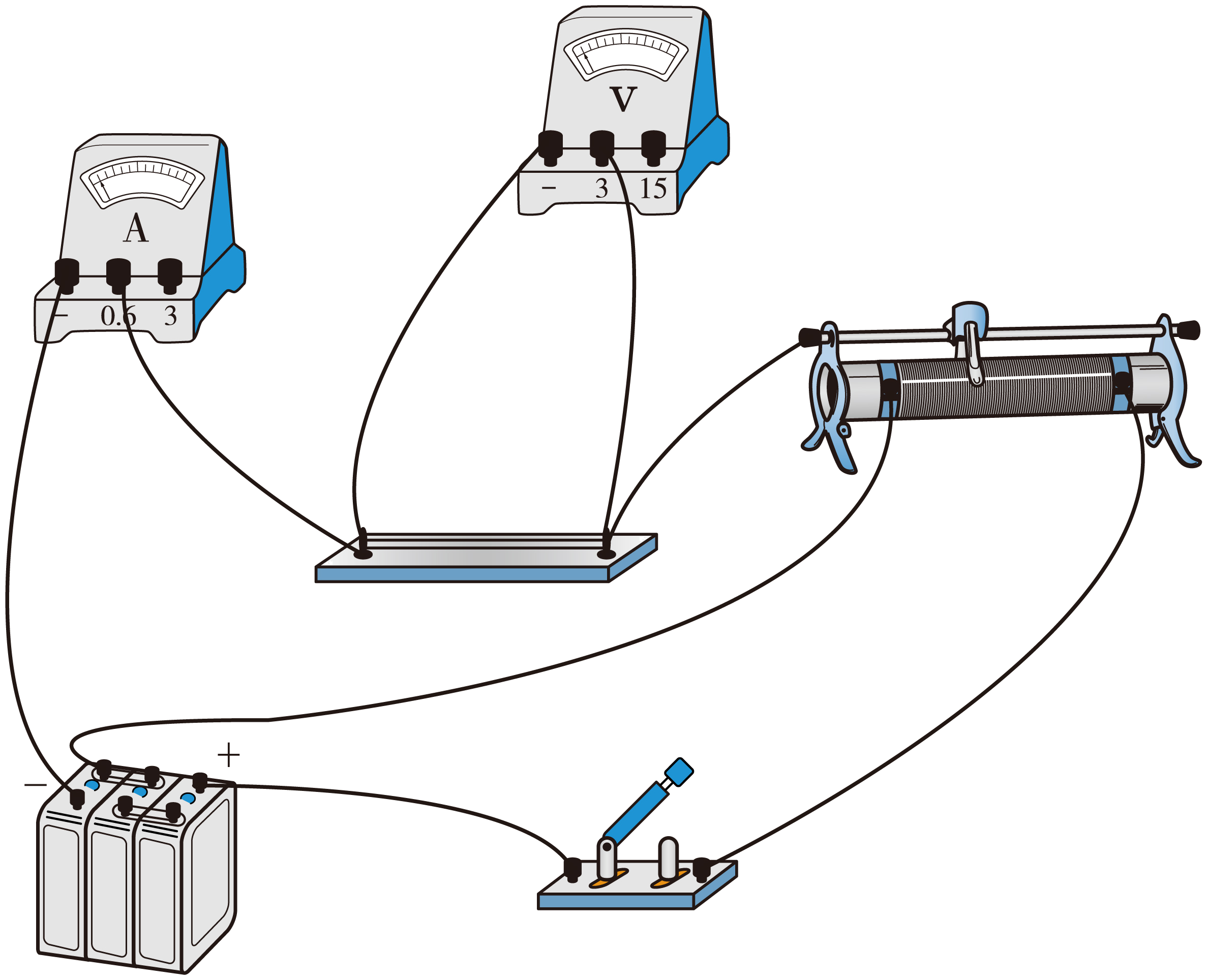 由于待测电阻约为$10\;\rm \Omega$,而蓄电池电动势为$6\;\rm V$,则有$I_{\text{m}}=\dfrac{6}{10}=0.6\;\rm \text{A}$