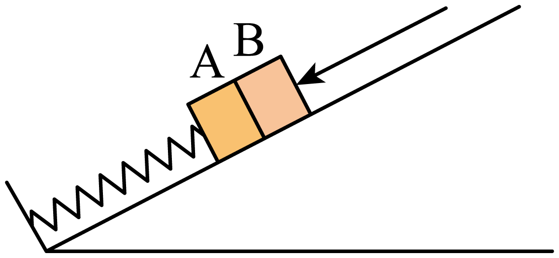 如图所示,在光滑斜面底端固定一个轻弹簧,弹簧上端固定一个物块$A$,另一个物块 $B$ 与物块$A$ 并排放置但不粘连,两物块质量相同。现用一个平行于斜面的外力推物块 $B$使弹簧压缩并保持静止,撤去外力后弹簧推动物块运动,并能使物块$B$离开$A$ 后继续沿斜面向上运动,则下列说法正确的是$(\qquad)$
