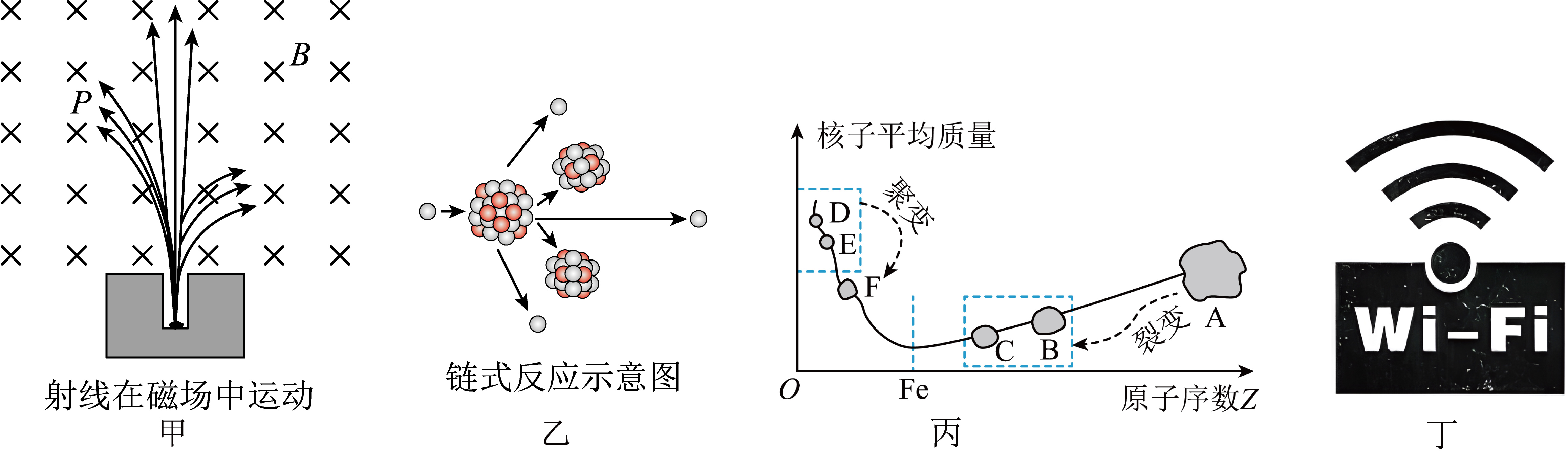 ","图丙反映核子的平均质量与原子序数的关系,重核$A$裂变变成原子核$B$和$C$时,会释放核能