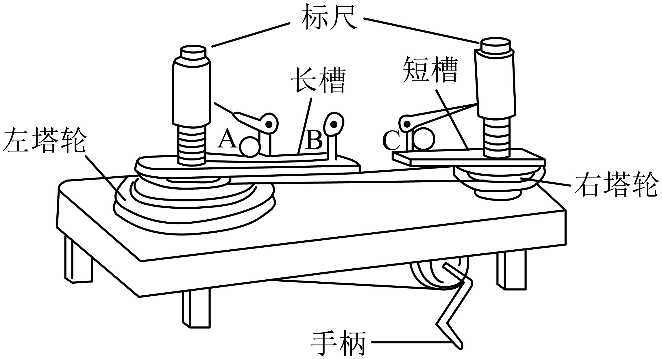 结合题意可知,左右两塔轮转动的角速度之比为$1:3$,由$F=mr\omega^{2}$