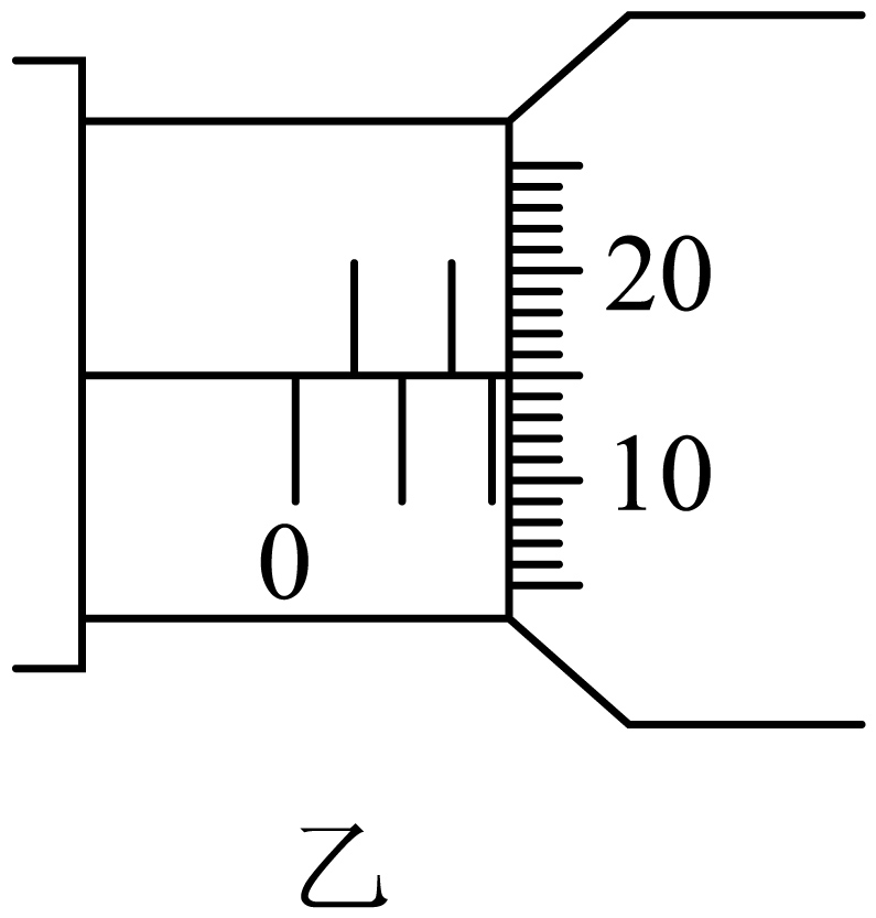 ②用螺旋测微器测量遮光条的宽度如图乙所示,则遮光条的测量值$d=$ $\;\rm mm$。