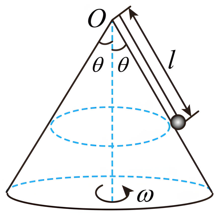 如图,用一根长$l=1\;\rm m$的细线,一端系一质量$m=1\;\rm kg$的小球(可视为质点),另一端固定在一放置地面的光滑锥体顶端,圆锥体始终静止不动,锥面与竖直方向的夹角$\theta=37^\circ $,$O$点距地面高度$h=1.5\;\rm m$。小球在水平面内绕锥体的轴做匀速圆周运动。($g=10\;\rm m/s^{2}$,$\sin53^\circ =0.8$,$\cos53^\circ =0.6$)求: