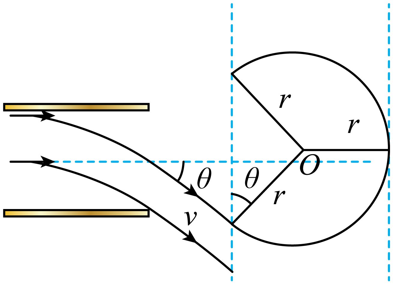 粒子飞出电场时,根据速度分解有$v\cos \theta=v_{0}$