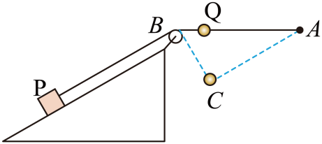 如图所示,倾角为$30^\circ $的光滑斜面固定在水平面上,斜面顶端$B$固定有轻质滑轮,轻绳左右两端分别连接质量均为$m$的物块$P$和小球$Q$,并跨过滑轮。小球$Q$还连接另一根长度为$4L$的轻绳。此轻绳另一端固定在$A$点,连接小球$Q$两端的绳一开始刚好拉直且水平,$AB$距离为$5L$。静止释放小球$Q$,到达$C$位置时,$BC$距离为$3L$,已知$\sin 37^\circ =0.6$,$\cos 37^\circ =0.8$,重力加速度为$g$。小球由静止释放运动到$C$位置的过程中,则$(\qquad)$