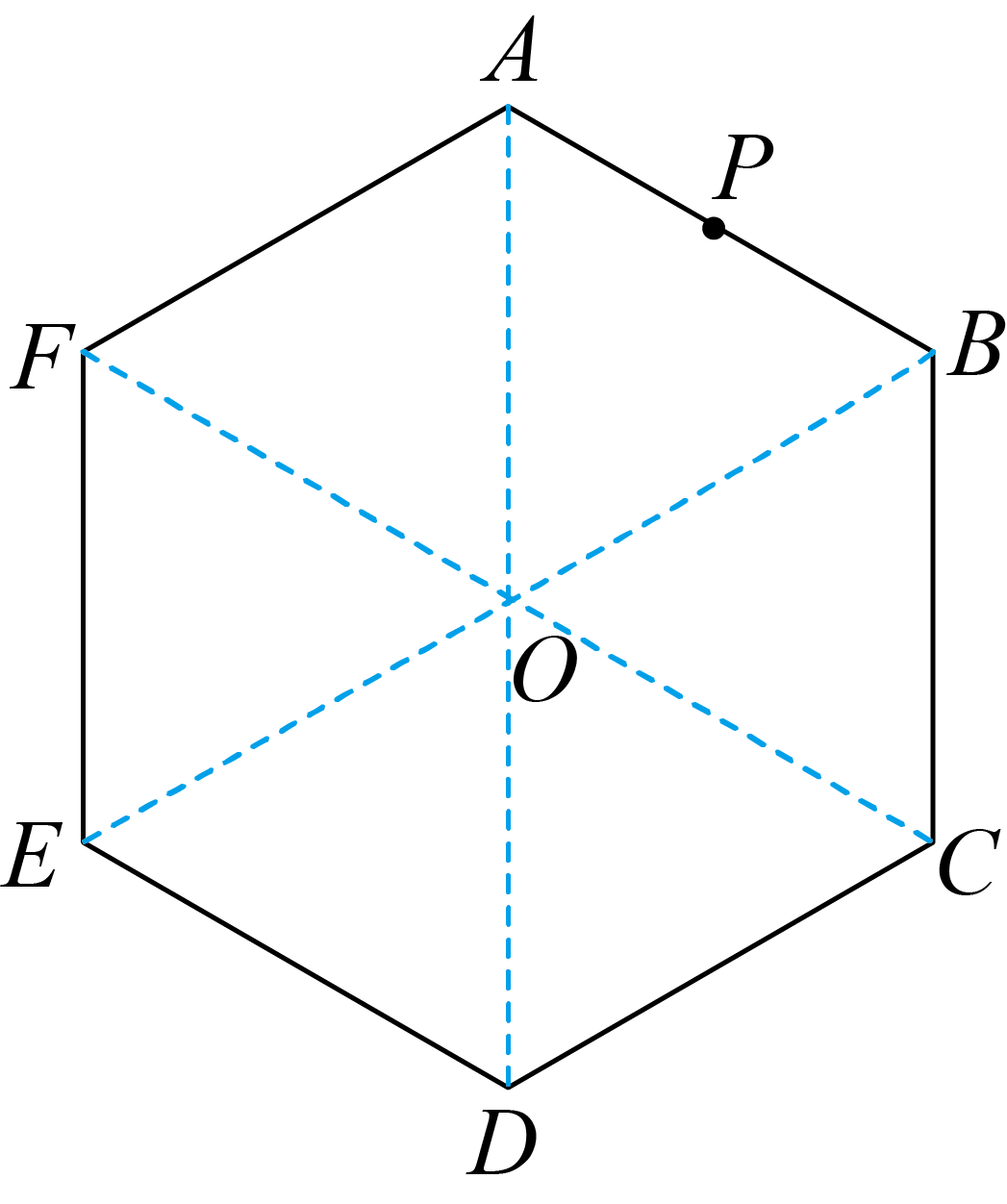 "]$\rm AB$.正六边形平面$ABCDEF$,$P$点为$AB$边中点且$|AF|=3\lambda$,则$PA=1.5\lambda$,$DA=6\lambda$