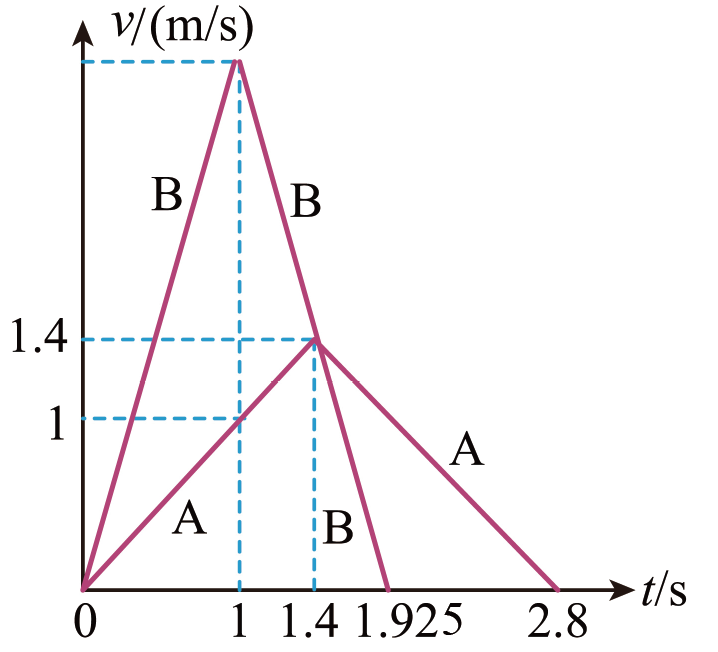 解得$v_{共}=1.4\;\rm m/s$,$\Delta t=0.4\;\rm s$