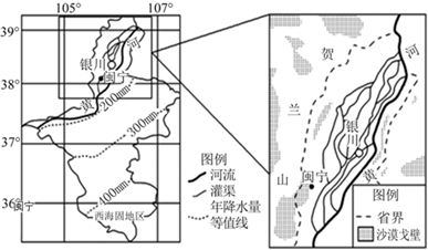 "]]由图可知,该地降水量少于200mm,晴天多,光照充足;位于黄河边,有许多的灌渠,水源充足;位于宁夏平原,地形平坦;“1996年,我国东西部扶贫协作开启征程,闽宁镇成为福建省的帮扶对象”,说明闽宁镇有国家扶贫优惠政策的支持;闽宁镇是福建省的帮扶对象,福建省和银川市闽宁镇有科技支持:闽宁镇距离银川市近,农产品的市场广阔。