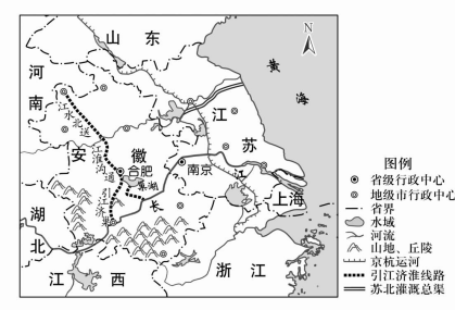 材料二 为加强南北联系,安徽修建引江济淮工程,于2023年建成通水通航。