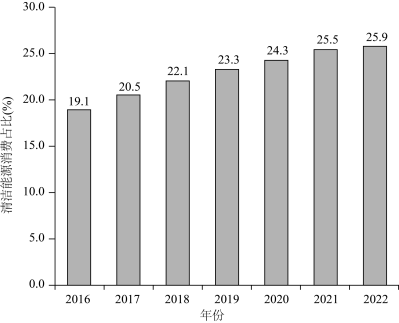 深地储能是指利用深部地下空间(地质体)实施石油、天然气、氢气、压缩空气等能源或能源物质和氦气等战略稀缺物质的储备。建设深地储能库是将风能、太阳能等清洁能源转换为可存储能源(压缩空气、氢气等)的最佳选择。深地储能地质体类型包括枯竭油气藏、矿洞等,枯竭油气藏是指已经开采衰竭或者开采到一定程度的退役油气藏。德国、法国和美国等已经开展在衰竭油气藏中大规模存储的工程试验,并取得了相关工程经验和基础理论认识。下图示意2016——2022年我国清洁能源(以风能、太阳能为代表)消费占比。