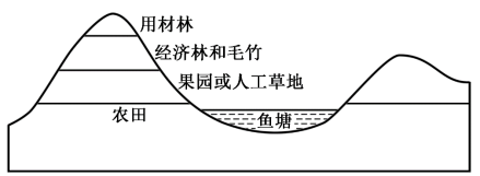 "]“丘上林草丘间塘,缓坡沟谷果鱼粮”,充分利用生物间的相互关系,兴利避害,为了充分利用空间把不同生物种群组合起来,多物种共存、多层次配置、多级物质能量循环利用的立体种植、立体养殖或立体种养的农业经营模式,充分体现了生态可持续发展的理念,故选C。