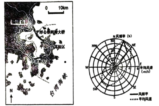 平潭综合实验区发展定位为“一岛、两个窗口、三区”。“一岛”指国际旅游岛,“两个窗口”指闽台合作窗口和国家对外开放窗口,“三区”是新兴产业区、高端服务区、宜居生活区。下图是平潭综合实验区示意图和风频风速图。据此完成下面小题。