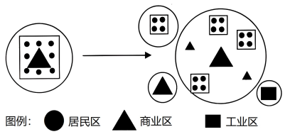"]通过对图示的分析可知,原城市中心商务区周边居民区分布密集,人口密度过大,易出现交通拥堵等弊病,A正确;现阶段城市周边居民区较少,说明政府并未修建大量住宅,B错误;城市化后期才会出现逆城市化现象,本题城市化正处于发展期,C错误;企业部门移往周边地区是为了降低成本而不是为避免工业通勤路线太长,D错误。故选A。