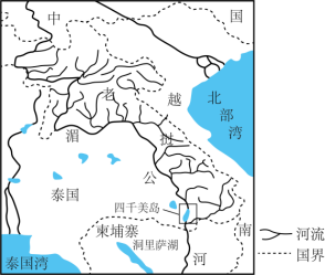 湄公河发源于青藏高原,从源头到入海口全长4000千米,落差约5000米,水能资源丰富,且60%以上蕴藏在老挝的崇山峻岭之间。老挝地处湄公河流域,降水丰沛,河流众多。为开发水能资源,老挝在境内修建了数十座水坝,90%的电力销往下游国家。下图示意老挝水系分布。完成下面小题。