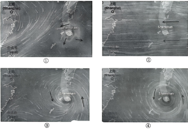 "]结合所学知识,台风是强烈发展的热带气旋,在近地面,气流受水平气压梯度力、地转偏向力(北半球向右偏)和摩擦力影响,由四周向中心辐合上升。在北半球,气流呈逆时针方向辐合。随着高度上升,摩擦力影响逐渐减小,高空大气主要受水平气压梯度力和地转偏向力作用,气流辐散,并最终风向与等压线平行(高空风)。而且从近地面到高空,气流的旋转半径会逐渐增大。读图可知,③图中气流明显是从四周向中心逆时针辐合,代表近地面气流运动;④图中气流也是逆时针旋转,但辐合程度比③图稍弱,且旋转半径有所增大,应是4200米的气流运动;①图中气流呈逆时针旋转,且旋转半径更大,同时向四周辐散,代表12000米的气流运动;②图中气流旋转半径最大,且风向基本与等压线平行,符合30000米高空的气流运动特征。综上,气流从近地面到高空的排序是③④①②,B正确,ACD错误,故选B。