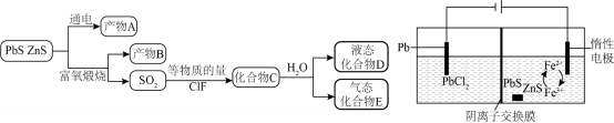 根据富氧煅烧(在空气流中煅烧)和通电电解(如图)的结果,$\text{PbS}$中硫元素体现的性质是 (选填“氧化性”、“还原性”、“酸性”、“热稳定性”之一)。产物$\rm B$中有少量$\text{P}{{\text{b}}_{3}}{{\text{O}}_{4}}$,该物质可溶于浓盐酸,$\text{Pb}$元素转化为${{\left[ \text{PbC}{{\text{l}}_{4}} \right]}^{2-}}$,写出该反应的化学方程式 ;从该反应液中提取$\text{PbC}{{\text{l}}_{2}}$的步骤如下:加热条件下,加入 (填一种反应试剂),充分反应,趁热过滤,冷却结晶,得到产品。